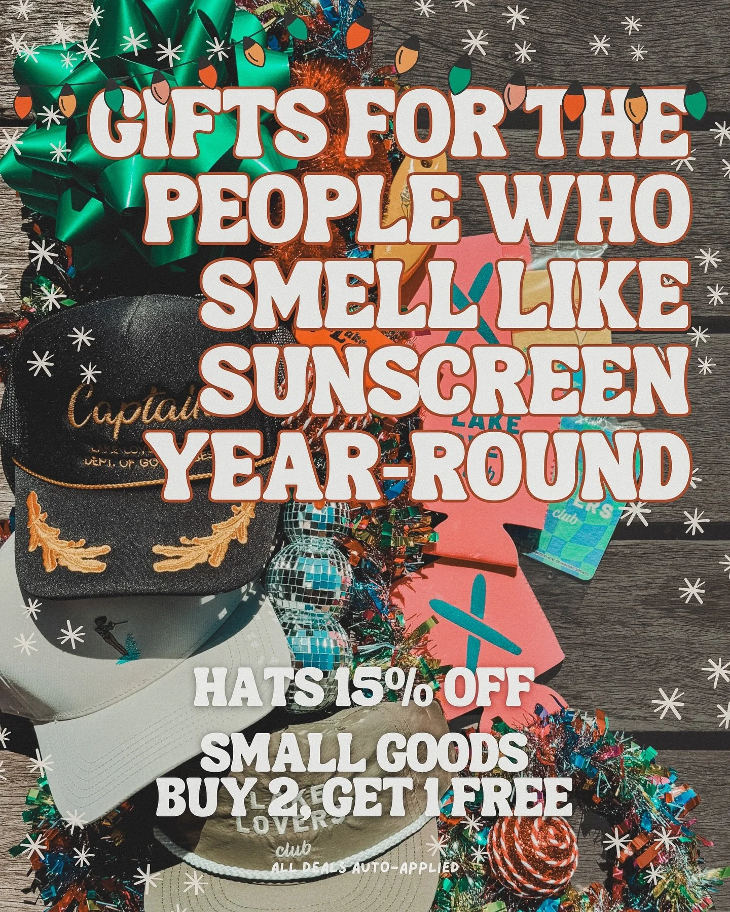 lake lovers hats, tees and tanks are ready for all your lake-lovinβ gift lists β dads, brothers, moms, cousins, boat besties, all of βem.